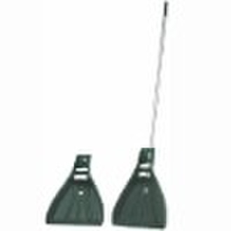 Plastic leaf rake & claw Model # SH420 1.Overall length: 1690mm (66.5") 2.PP blade, size: 420mm (16.5")×560mm (22") 3.Anodized oval aluminum tube (6061) handle 4.Assemble blade with handle by snap-lock, easy assembly and disassembly 5.Assembly with handle, as leaf rake to collect messy leaves 6.Disassembly without handle, as leaf claw to send leaves into pail 7. Outer packing: corrugated carton 8. Pack size: 6 sets/ctn9. Carton size: 65*42*62 cm10. Gross/net weight: 8/7 kg11. 20'container quantity: 972 sets12. 40'container quantity: 1944 sets